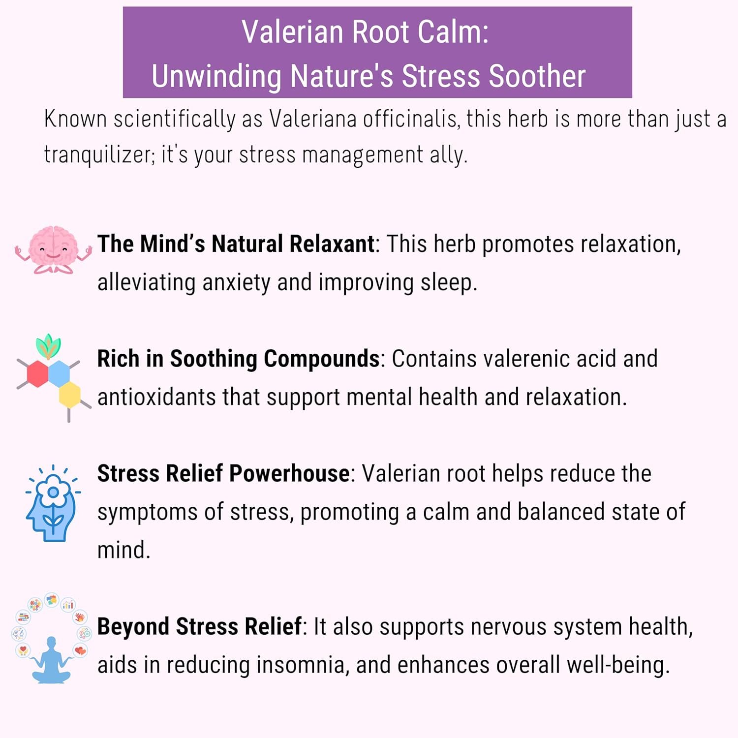 Valerian Root, Lavender, Lemon Balm, Ashwagandha, Blue Pea Flower, Lemon, Honey