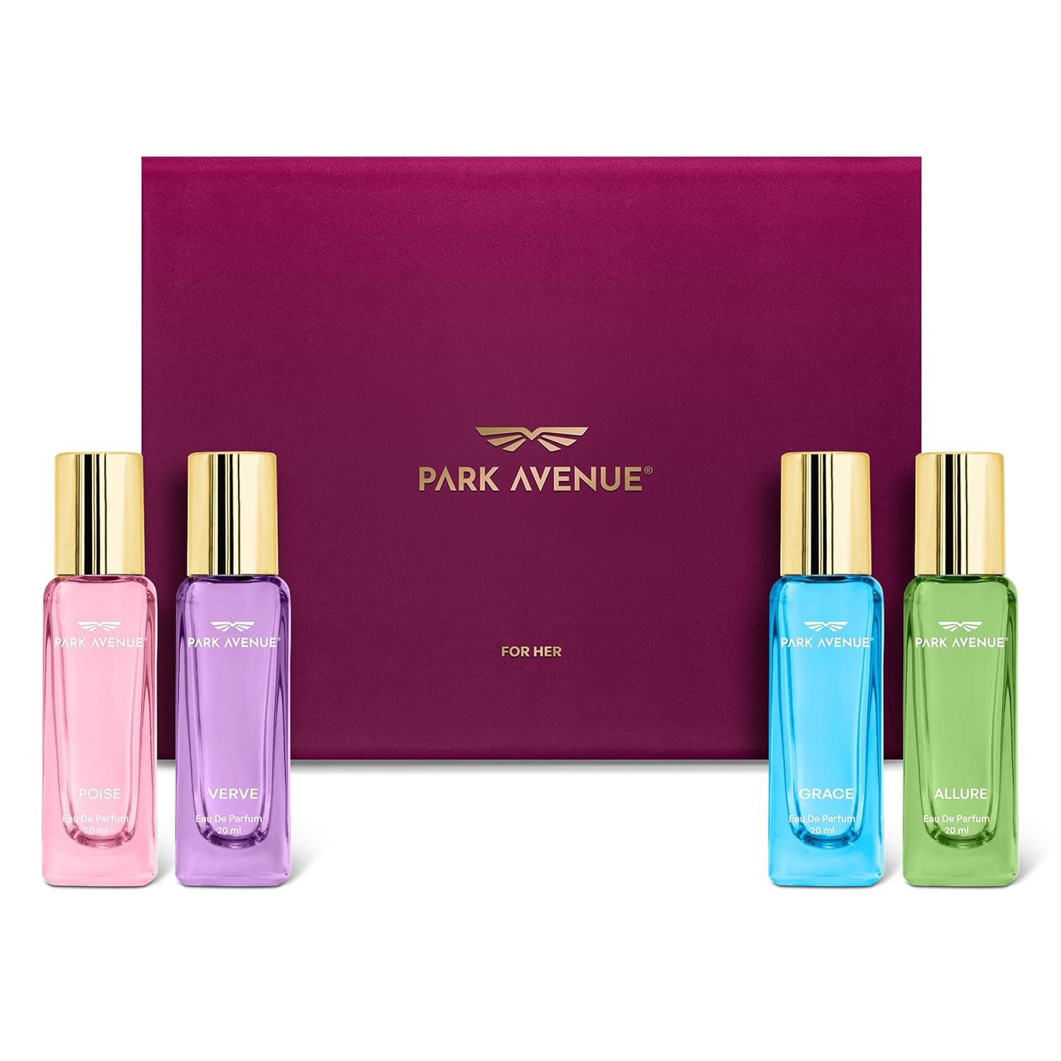 Park Avenue For Her | Luxury Perfume Gift Set for Women | 4x20ml | Poise, Grace, Verve, Allure | Long Lasting EDP | Fresh | Floral | Premium Fragrance