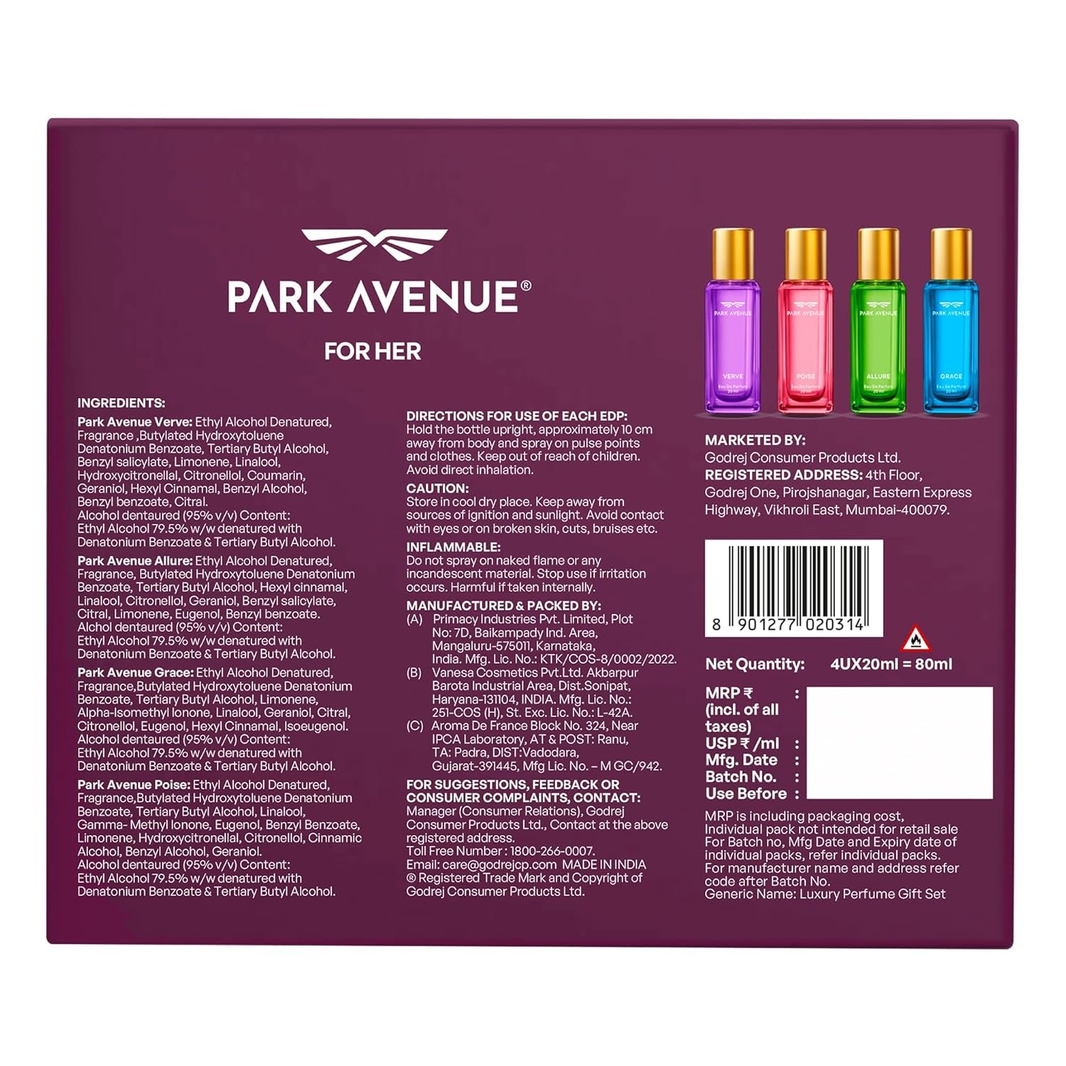 Be the first to review “Park Avenue For Her | Luxury Perfume Gift Set for Women | 4x20ml | Poise, Grace, Verve, Allure | Long Lasting EDP | Fresh | Floral | Premium Fragrance” Cancel reply