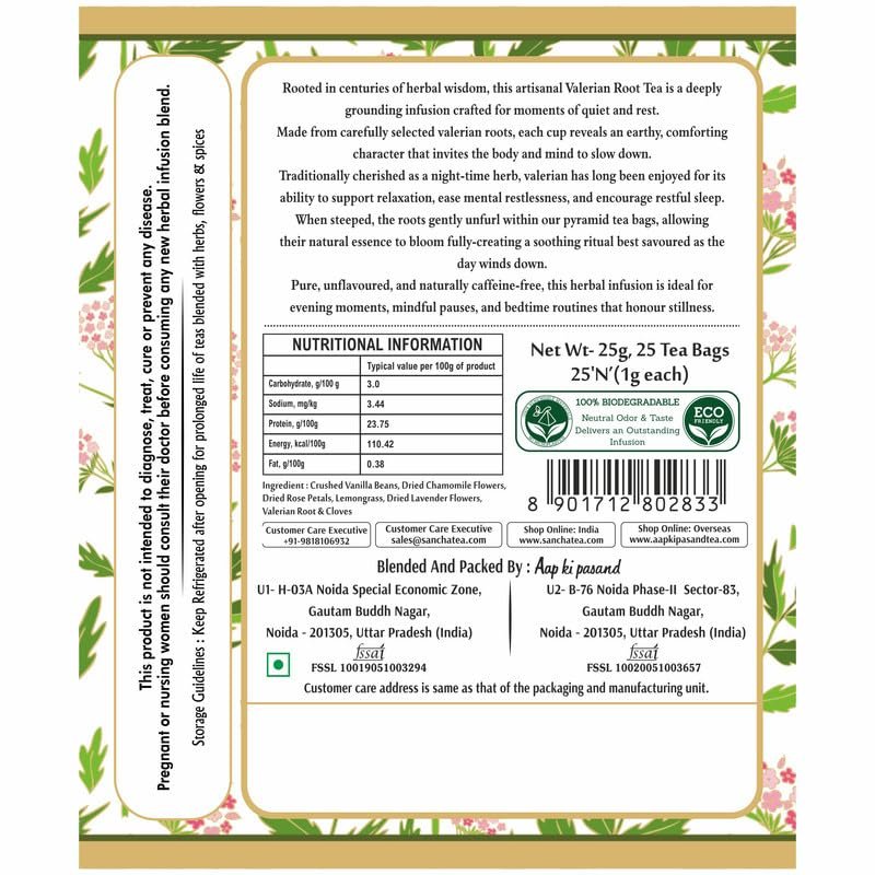- Herbal Blend for Relaxation & Sleep Support β Crafted with imported valerian root, chamomile, lavender, rose, lemongrass, vanilla & cloves, traditionally enjoyed to calm the mind and encourage restful sleep