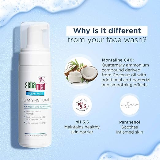 Sebamed Clear Face Cleansing Foam| pH 5.5 | Combats pimples with Montaline C40 | Deep pore cleansing | Dermatologically & clinically tested | 150ml