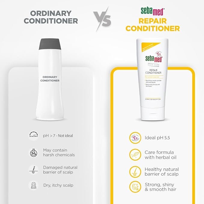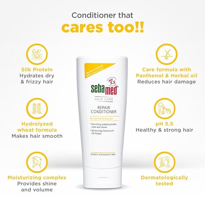 SebaMed Hair Repair Conditioner | Ph5.5 I 88% ‘Excellent Care’ Results | Repairs Dry, Damaged Hair & Scalp | Moisturizing Formula Adds Shine & Volume Unscented, 200 Millilitre