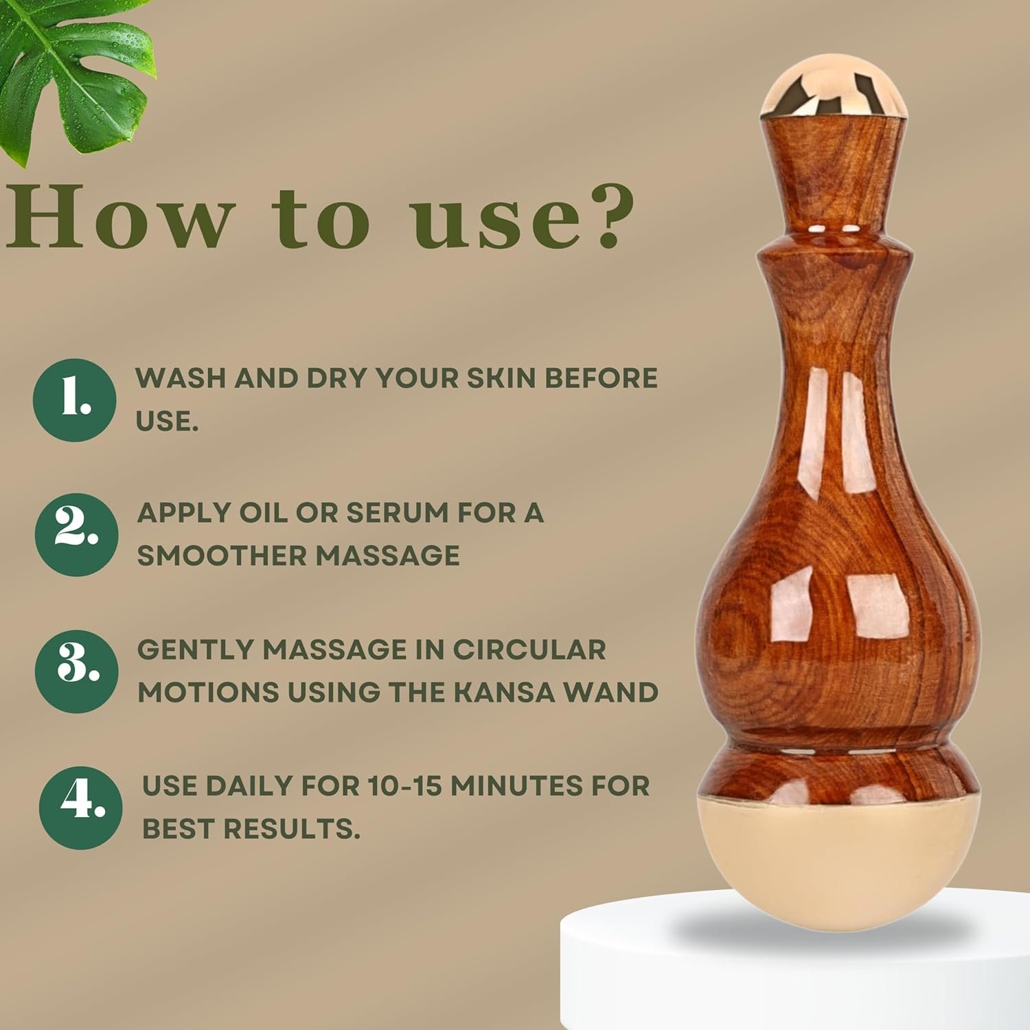 - ✔️ Kansa Body Massage: Deeply moisturize your body for the Kansa Wand to slide gently · Start by rotating the Kansa Wand in slow circular motions, working on tensed muscles · Ensure the pressure is light but firm · Concentrate the movements around the Marma points to release muscle tension.