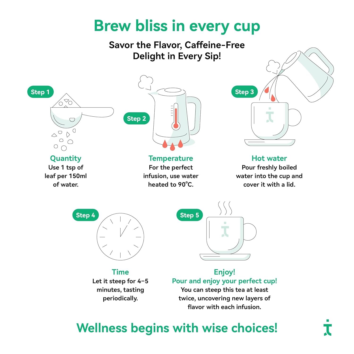- HOW TO BREW: Use freshly boiled water cooled to 80C and brew for 1-2 minutes. Take a sip and let it revitalise you.