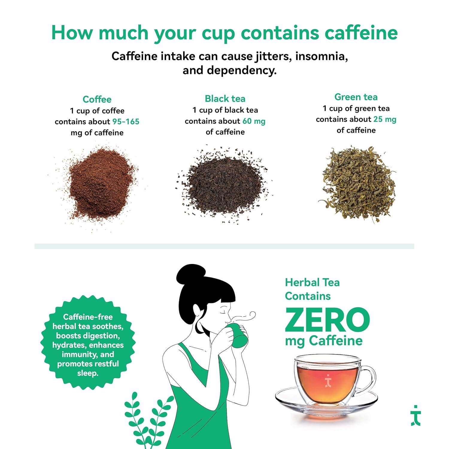 - CAFFEINE FREE: Enjoy a soothing cup of tea anytime without worrying about caffeine. Our Tea is naturally caffeine free, making it an ideal choice for those seeking a relaxing and caffeine free beverage option.