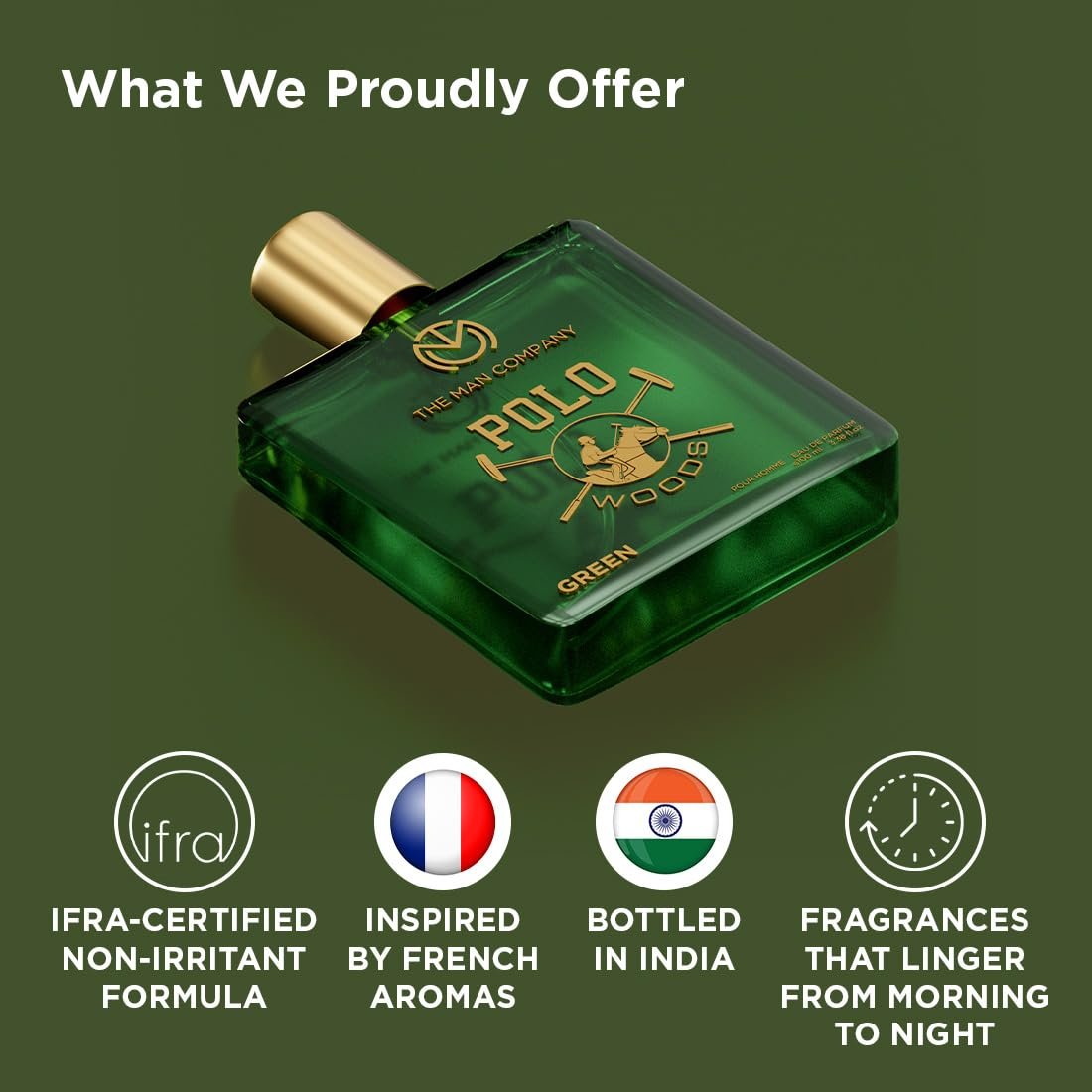 - EAU De Parfum Polo Green by The Man Company is designed to keep you on a higher podium, always. Enriched with premium essential oils, the perfume gives you the confidence to inspire not just your teammates, but also your opponents.