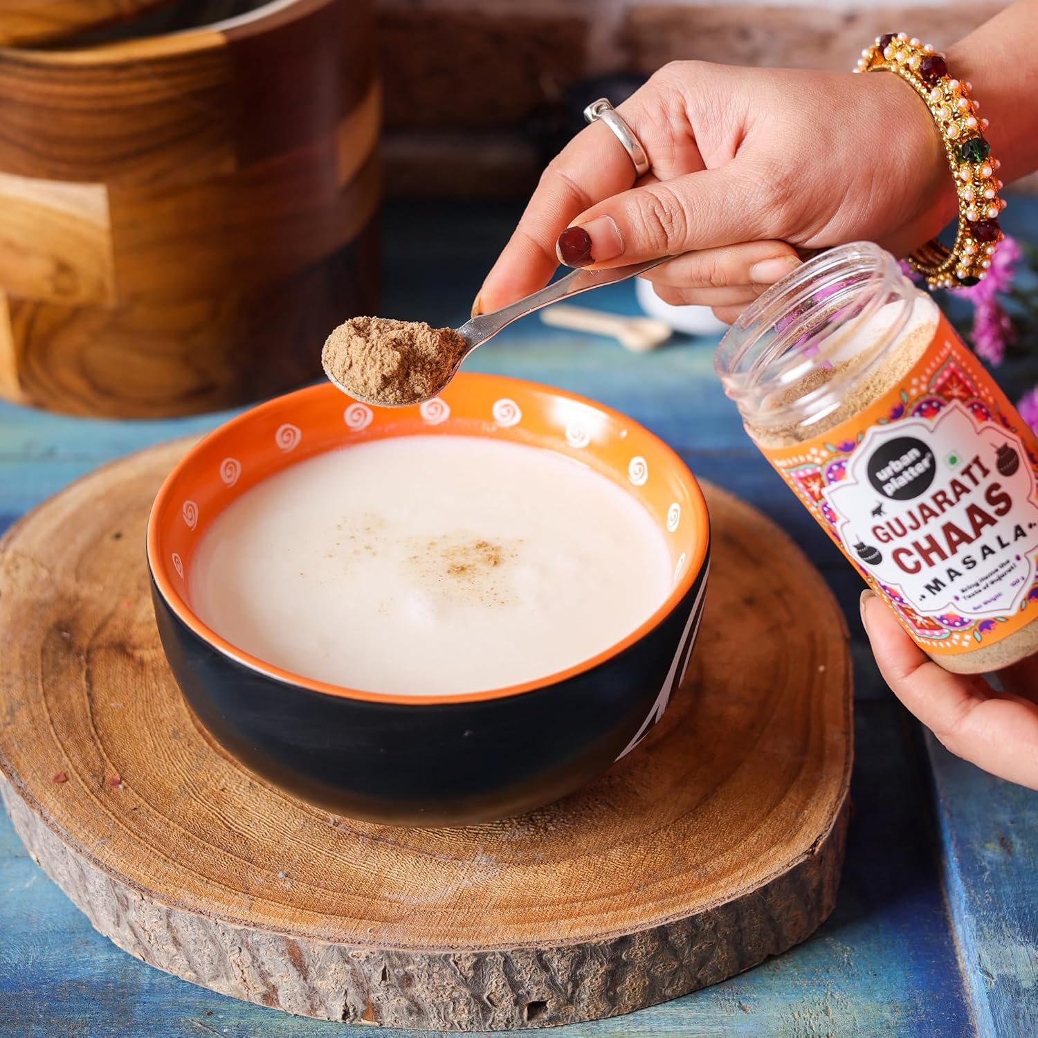 - Authentic Gujarati Essence: A careful blend of roasted cumin, earthy black salt, and tangy dried mango powder that captures the soul of traditional chaas. Additive- and preservative-free, it brings you the purity of flavours just as they are cherished in Gujarati kitchens.