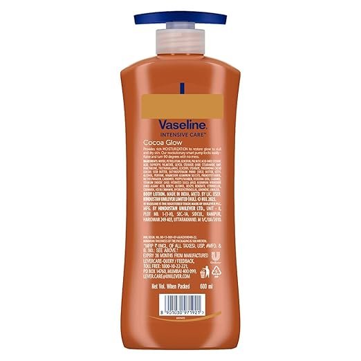 - EASY TO USE PACKAGING: The Vaseline Intensive Care Cocoa Glow Nourishing Body Lotion (600 ml) has a smart pump quick-lock technology that unlocks and locks with ease without creating any mess, making it super convenient to use.
