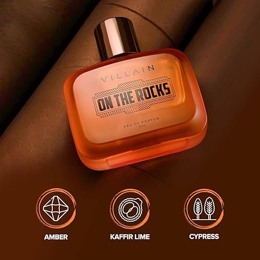 - Villain On The Rocks Eau De Parfum is a unique concoction of Kaffir Lime, Cedar, Patchouli & other unique notes for every man. With the base notes and middle notes more woody and aquatic, the top notes add a citrusy touch to it