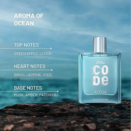 Wild Stone CODE Acqua Perfume for Men, 100ml l Long-Lasting Eau De Parfum having Fresh & Oceanic Vibes with Marine, Musk, Amber, and Patchouli Notes|LuxuryMen EDP Perfume