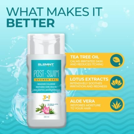 Elemnt Post Swim Shower Gel for Teens & Adults | Chlorine & Odour Clear Body Wash | Prevents Body Acne, Exfoliates & Deep Cleanses Skin | Contains Tea Tree Oil, Aloe Vera, Lotus Extracts – 200 ml
