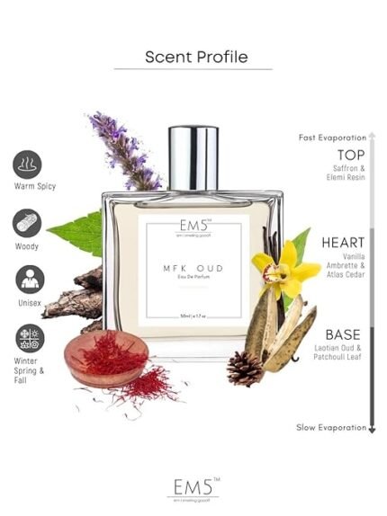 EM5™ MFK Oud Unisex Perfume | Warm Spicy Oud Aromatic | EDP Spray For Men & Women | Strong & Long Lasting Fragrance | Luxury Gift For Him/Her