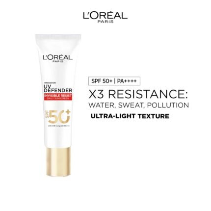 - L’OREAL PARIS UV DEFENDER INVISIBLE RESIST DAILY SUNSCREEN SPF 50+ uses exclusive Netlock Technology for a clean touch and a protective network on skin, offering high protection against UV rays and long UVA.